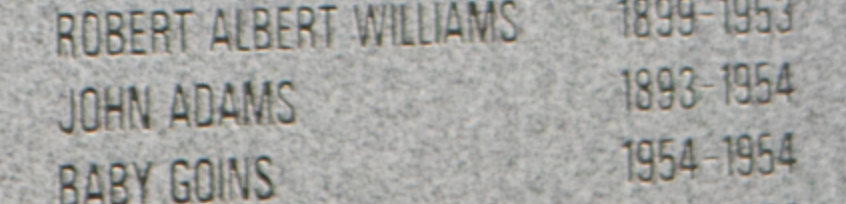 The unmarked section lay in disrepair and disrespect for years, unfenced and uncultivated. Students stole the few stones that had been placed, and exercised their dogs there. But finally in 2017, archeological and archival work culminated in the dedication of the marker, which names as many people as can be identified who lie there. And a “John Adams” appears, 1893-1954, who may be the man in the photo.