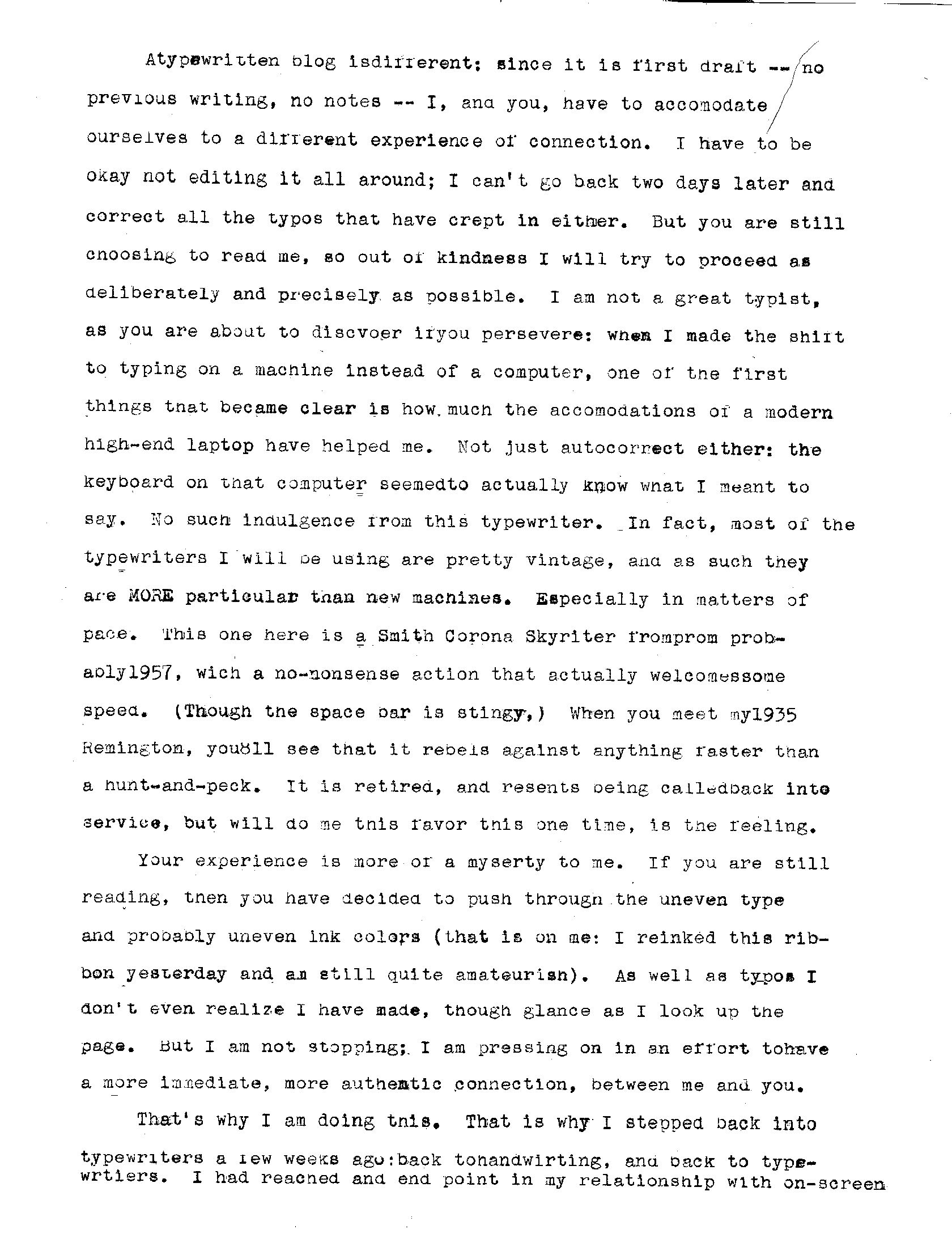 Related: I have learned to say ridiculous things in classrooms. Like, “Forty-five minutes from now, I am hoping you will be different in these ways because you will understand these two ideas.” This kind of teaching is the murmuring of incantations, really: sacralizing a time and place toward an end I, in generational tradition, think very worthy of such intention.